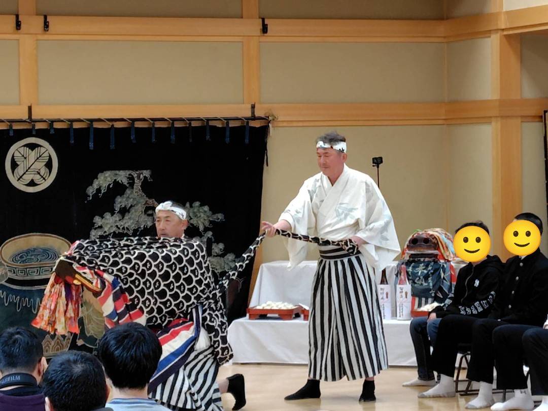 それにしても、二階講中の「祓い獅子」はいつも安心して見ていられます。何回観ても飽きるという事もありません。それもやっぱり練習の成果だと思います。そしてもう一つ「後幕は前に合わせる」「お囃子と舞を合わせる」という事も大事な技術かもしれません。「感動」は後からついてくる一対のもの。技術+アルファを求めて精進精進です。