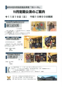 「11月定期公演」のご案内を致します。皆様お誘い合わせの上おいで下さいますよう、心よりお待ち致しております。