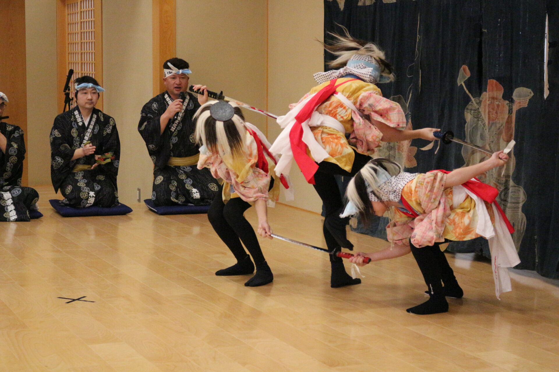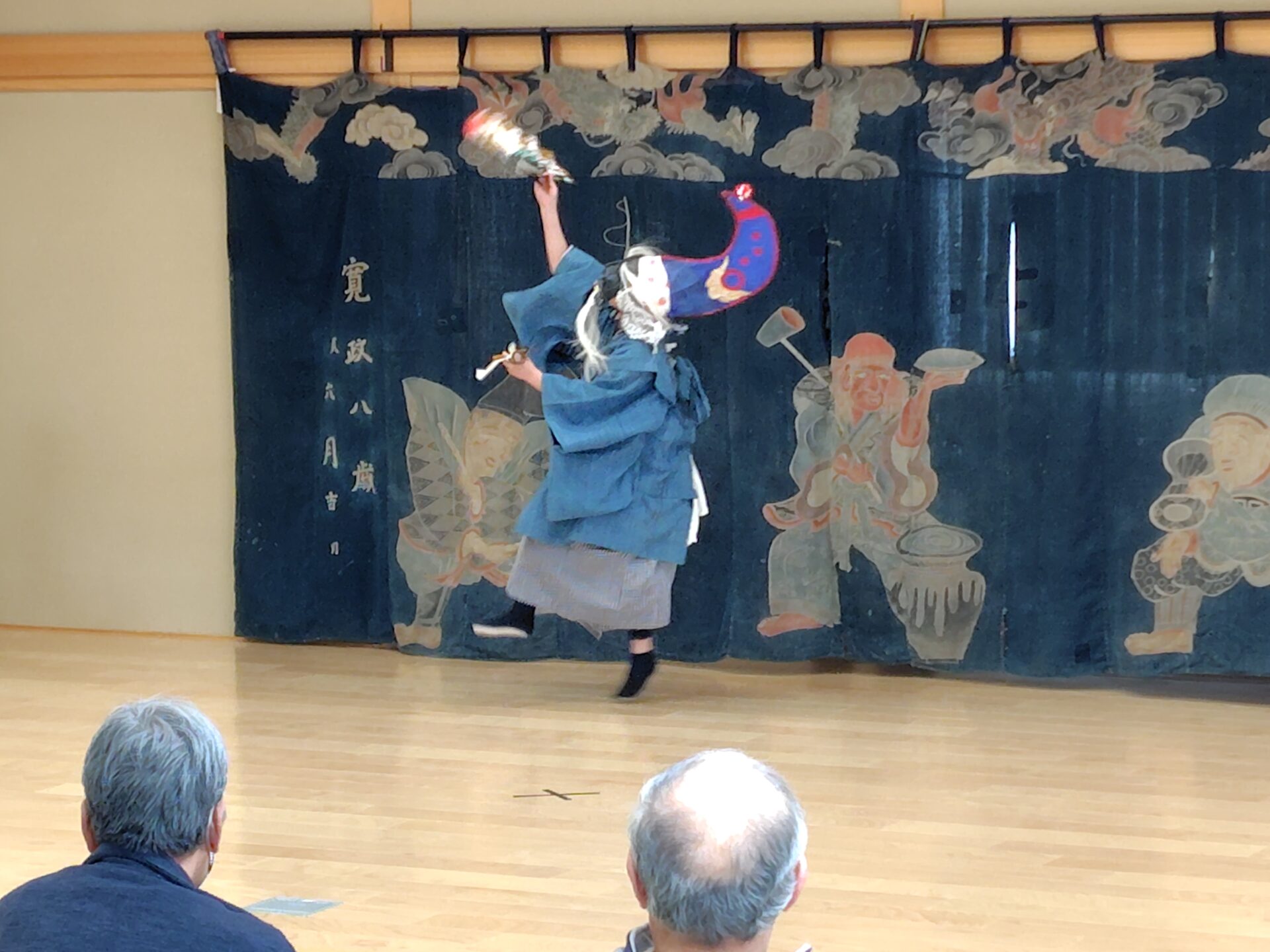 下直根講中の御神楽は鳥海獅子まつり以来でしょうか。兜、扇子、足拍子、、、一対の美しい舞に 思わずみとれてしまいました。韓国のお客様も今日の演目をご堪能いただけましたでしょうか。