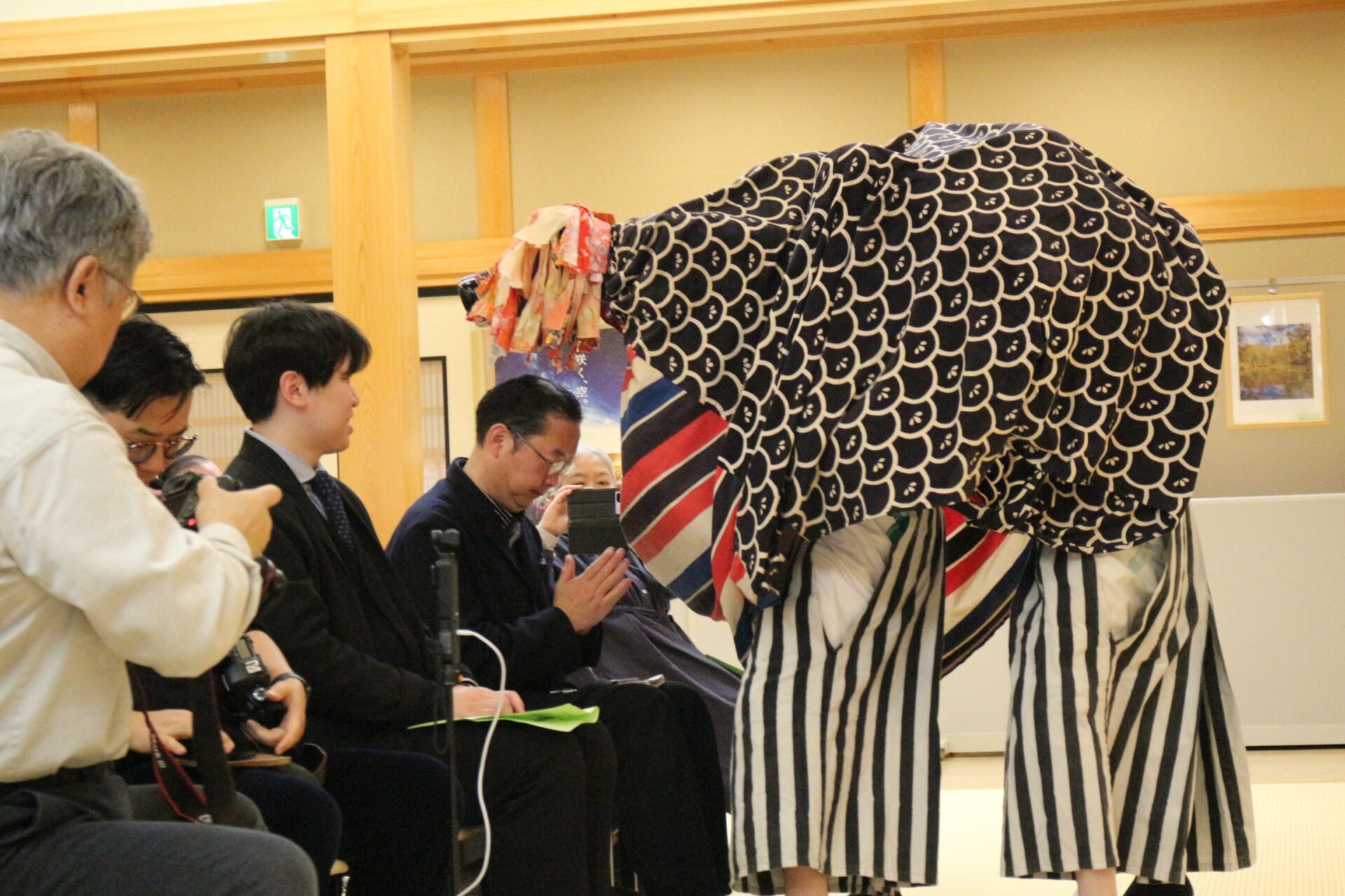 そんな中でもリハーサルの合間には講中同士の交流がみられ、「たまに合同練習を行うのもいいですよねえ?」と話したところです。伝承館で各講中が一同に会するのは滅多にないことで、番楽のお話などで盛り上がっていただければ幸いです。